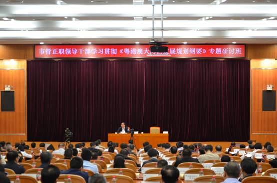 10日上午,市管正职领导干部学习贯彻《粤港澳大湾区发展规划纲要》(以下简称“《规划纲要》”)专题研讨班在市委党校开班。研讨班旨在进一步学习贯彻习近平总书记关于粤港澳大湾区建设的重要论述和对广东重要讲话、重要指示批示精神,进一步把思想和行动统一到中央和省委关于粤港澳大湾区建设的决策部署上来,全力推动大湾区建设全面深入开展。市委书记、市人大常委会主任梁维东作开班动员暨专题报告。市领导骆招群、潘新潮、戚优华、黄少文、杨东来、钟友国等出席开班式。